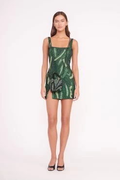 The Cadence Dress is a newย slip dress silhouette for Summer, featuring a halter neckline with beaded straps. The dress is crafted in satin and has a hidden back zipper.