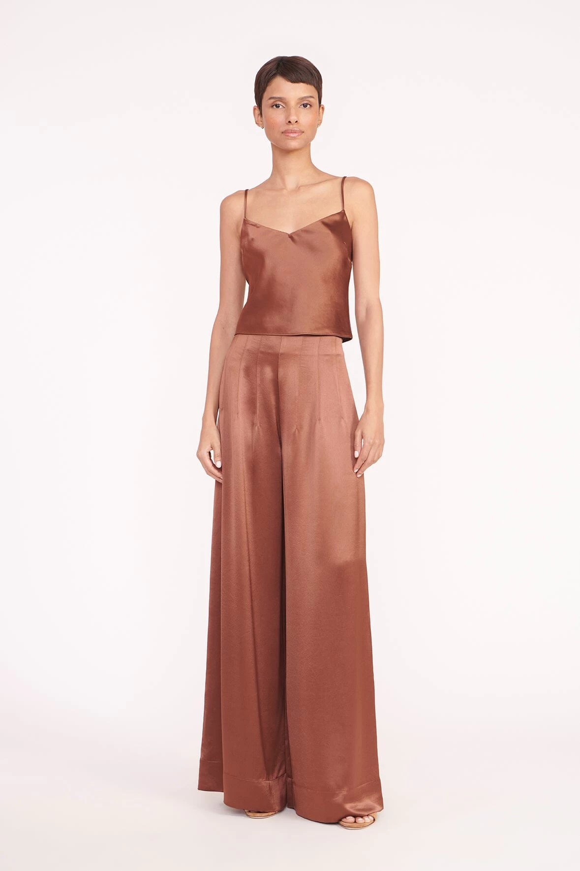 A sweeping wide-leg pant, the Caleb is an essential high waist trouser for any wardrobe. This style features corset seaming along the waist and a hidden zipper closure at the side.