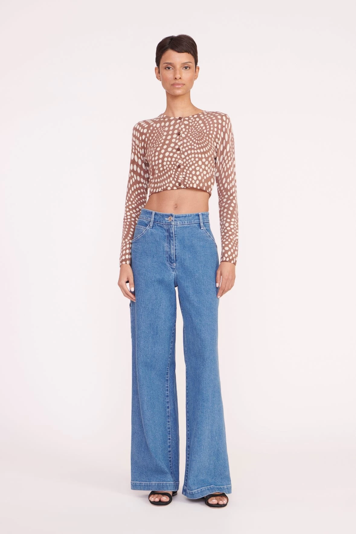 The Deanna Sweater is a cropped cashmere cardigan, a perfect layering piece for the season. The cardigan features a crewneck and button detail.