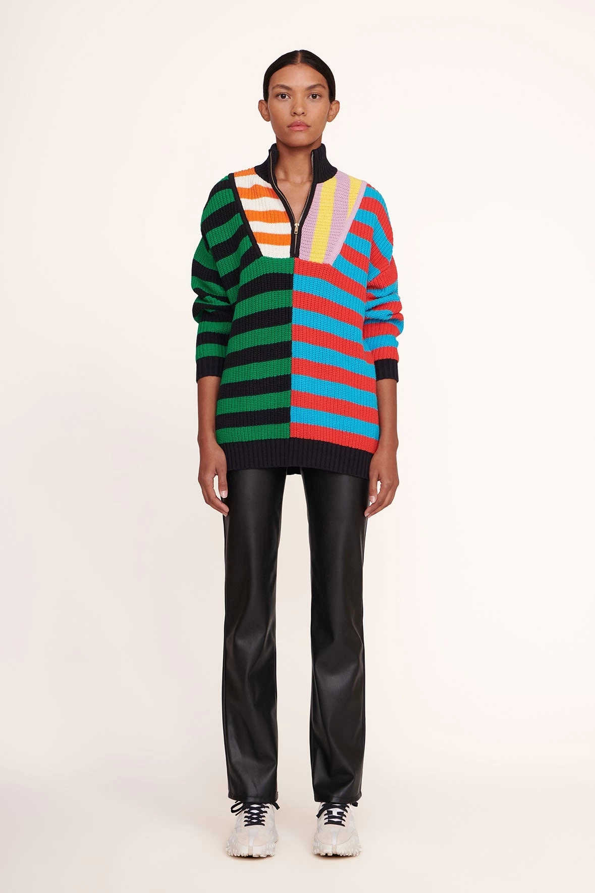 Our chunky cotton knit Hampton Sweater is an oversized boyfriend-style sweater in a bright, colorful stripe pattern. This style features a half-zip detail at the front.