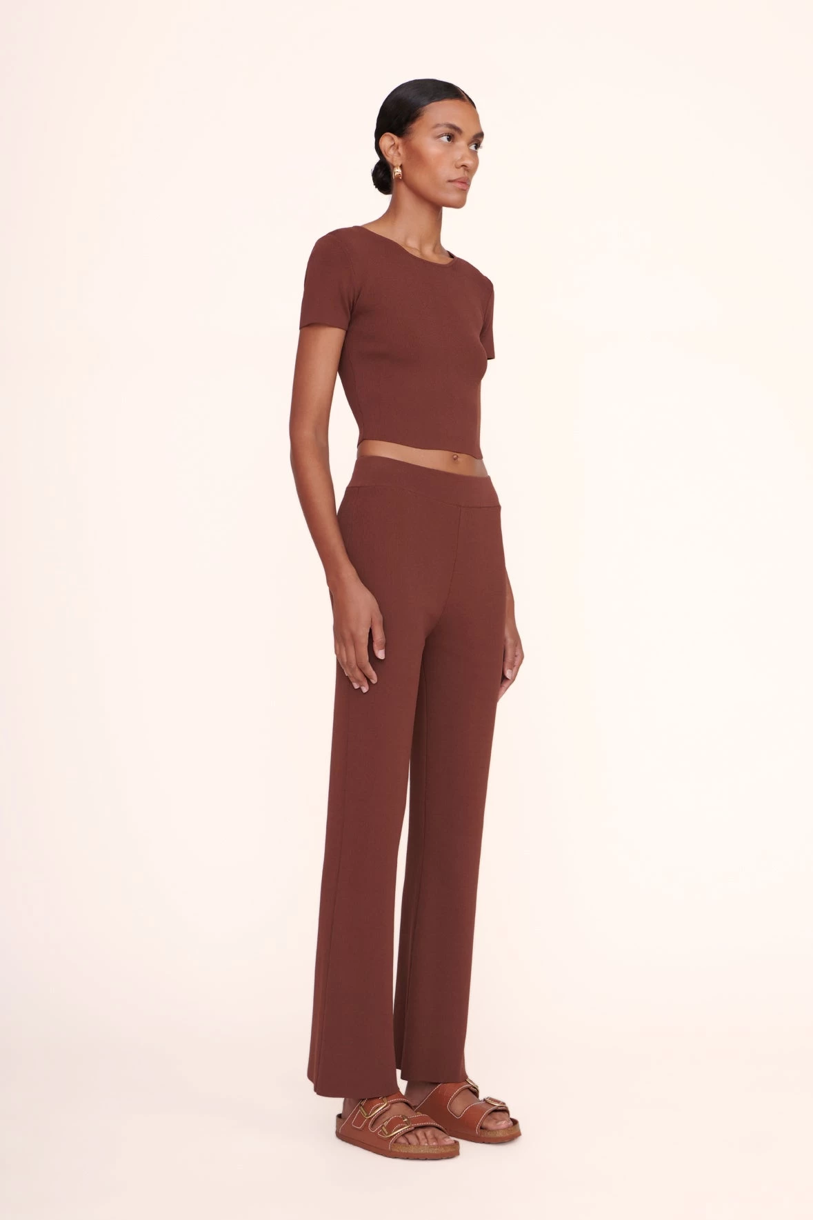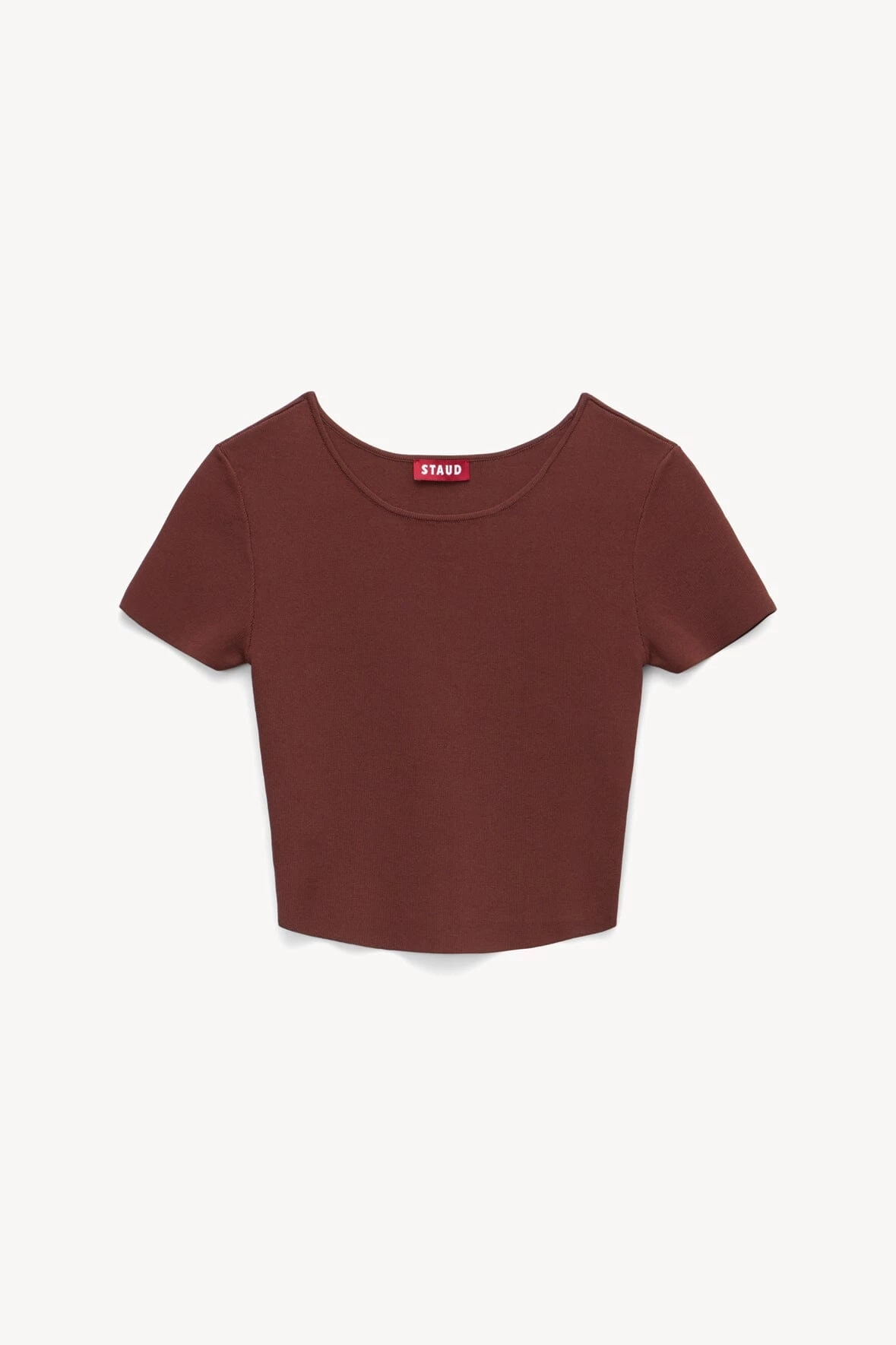 The Ila top is a cropped knit short sleeve tee shirt. A closet staple, pair back with any of our pants for an effortless look.