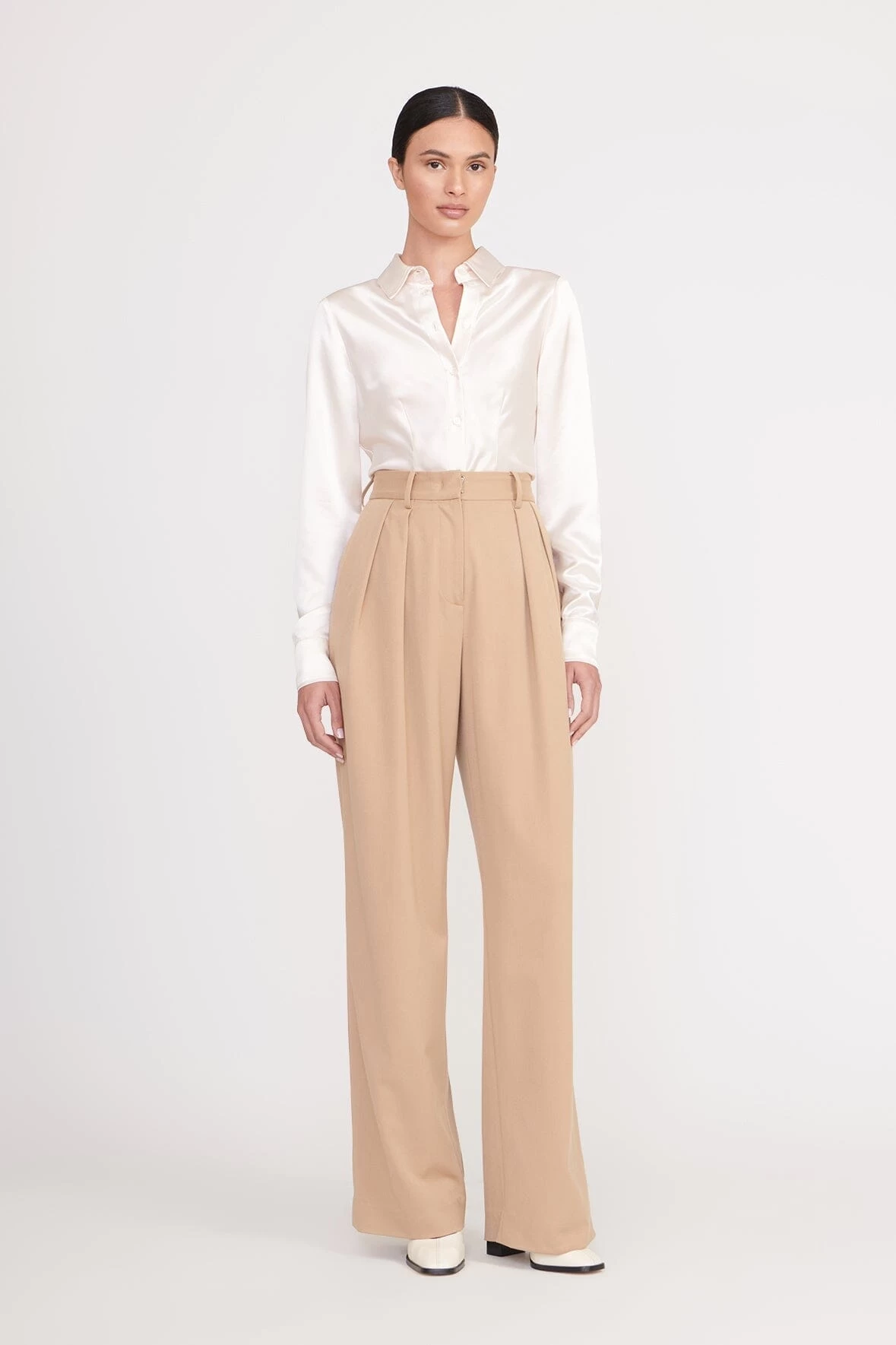 An essential wide leg pleated trouser, the Luisa Pant features two side pockets and a hook and zip closure. This style completes a suit when worn with the matching City Blazer.