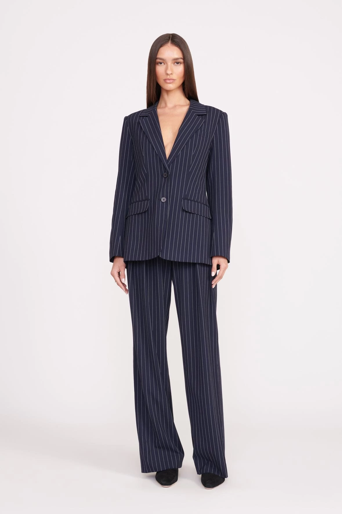 A classic pinstripe update to our wide leg pleated trouser, this style completes a suit when worn with the matching City Blazer.
