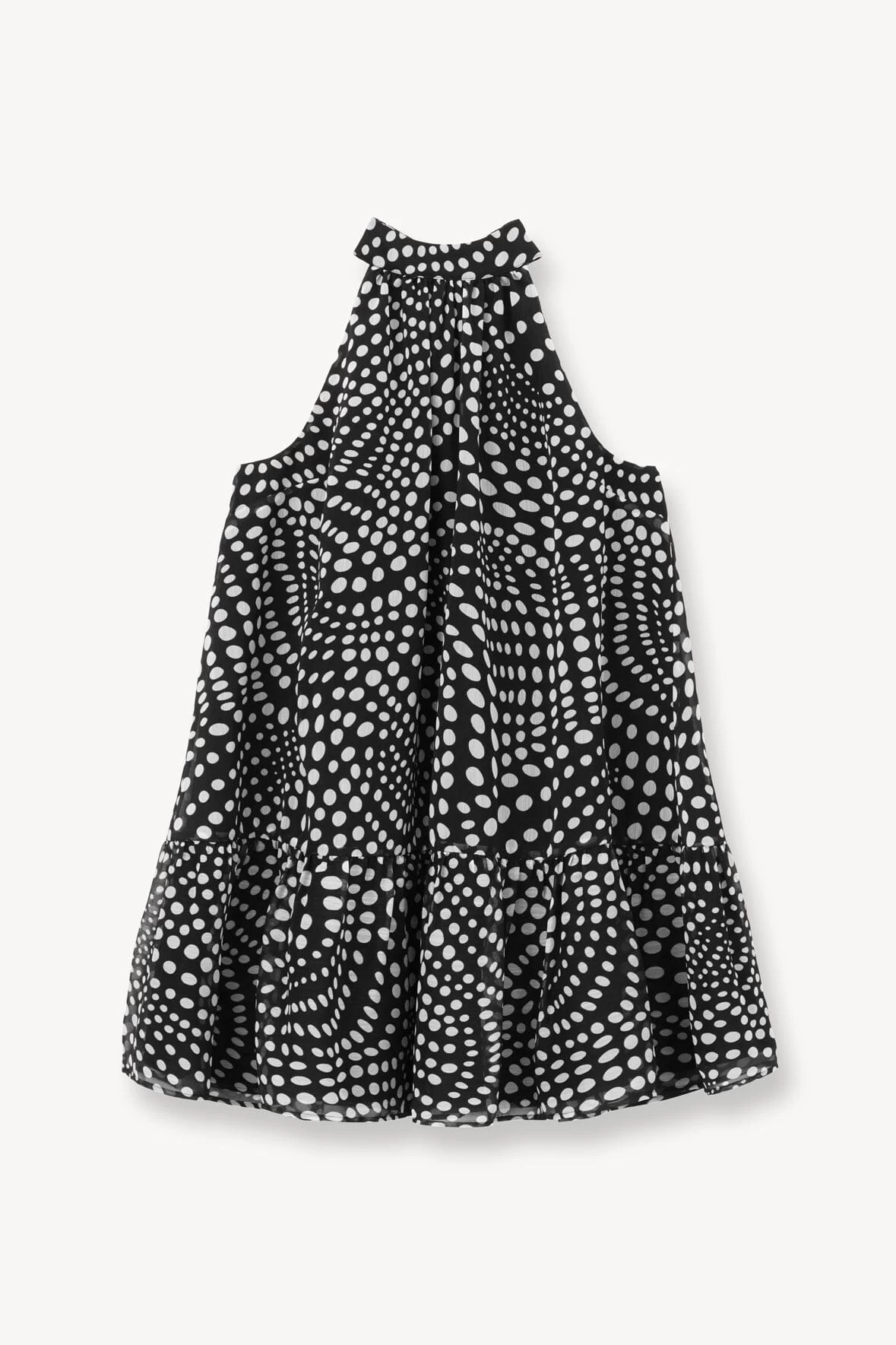 An easy a-line mini dress constructed out of a printed crinkle chiffon fabric, the Marlowe features a neck tie detail and peplum hem.