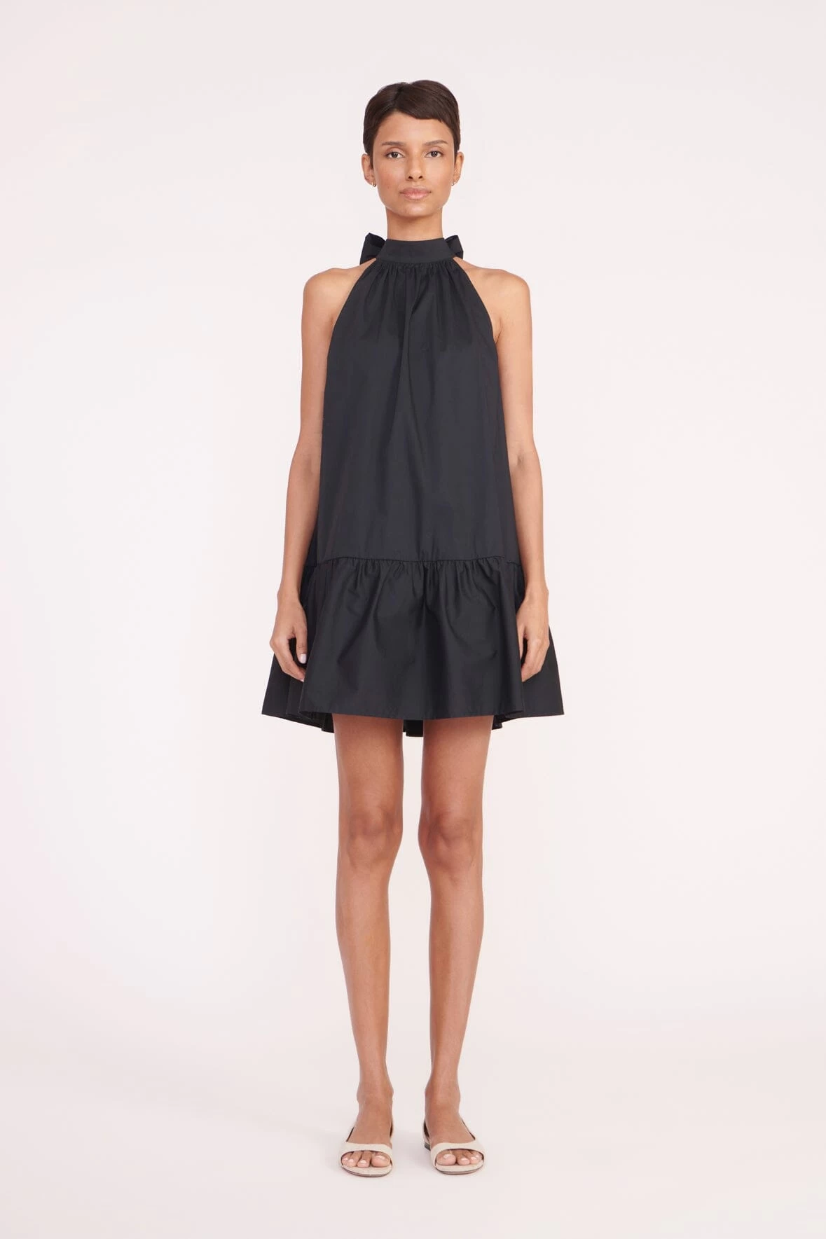 An easy a-line mini dress constructed out of cotton poplin, the Marlowe features a neck tie detail and peplum hem.