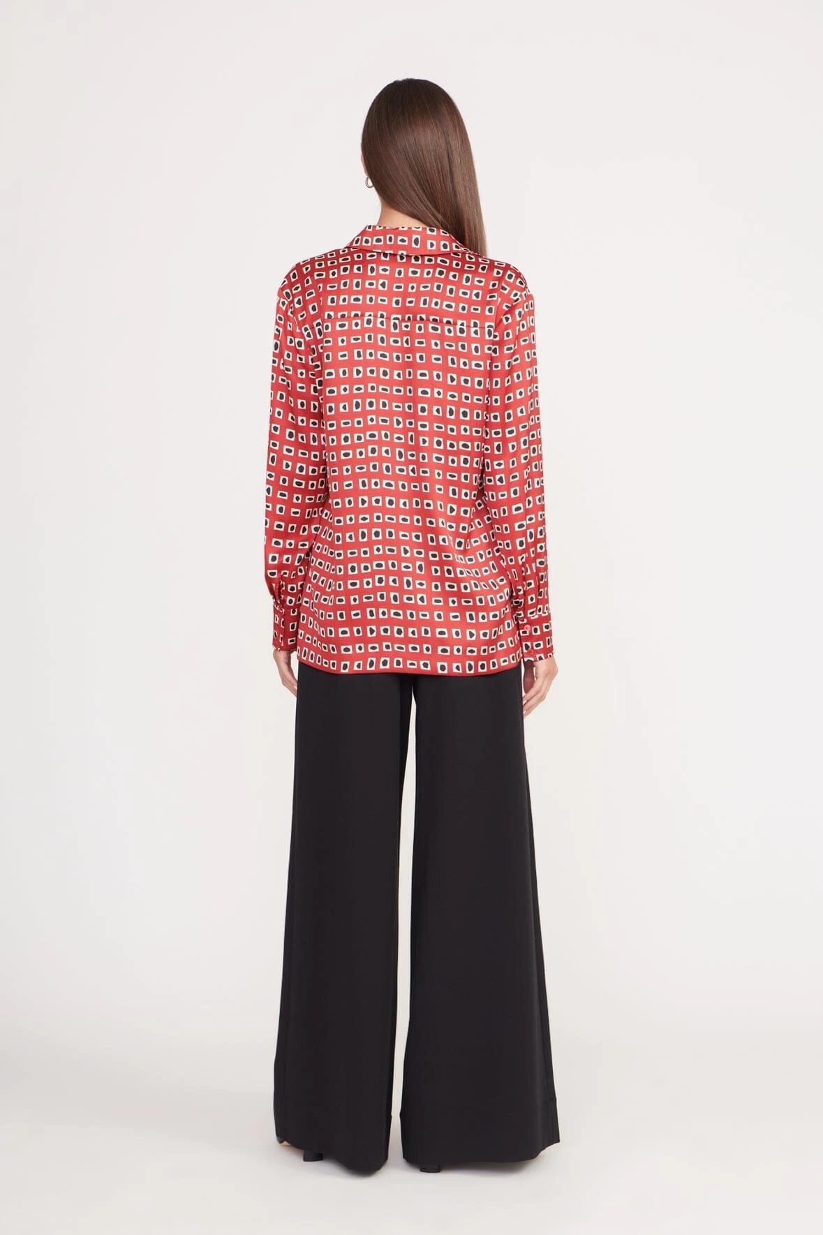 Oversized button down shirt featuring an all over geoscape surface-inspired pattern.
