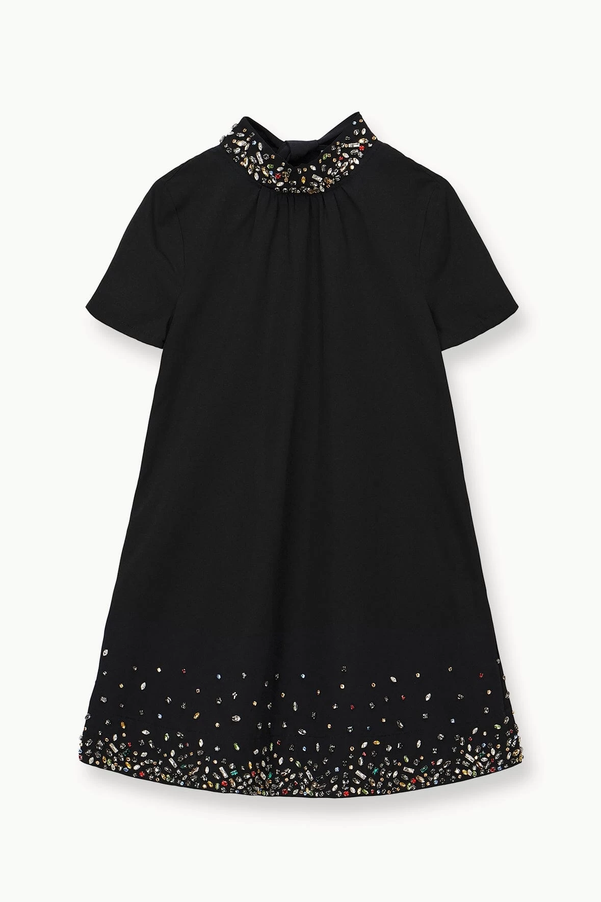 An embellished update to our best-selling Mini Ilana with crystal detailing at the neck. The Mini Ilana features a-line shape, open back, and self-tie neck detail.