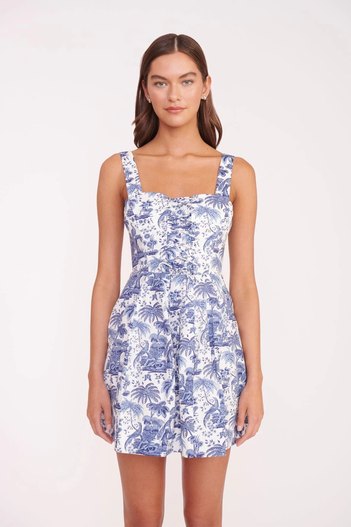 New for the season in stretch poplin, the Mini Sutton is a babydoll style dress with lace up corset detail.