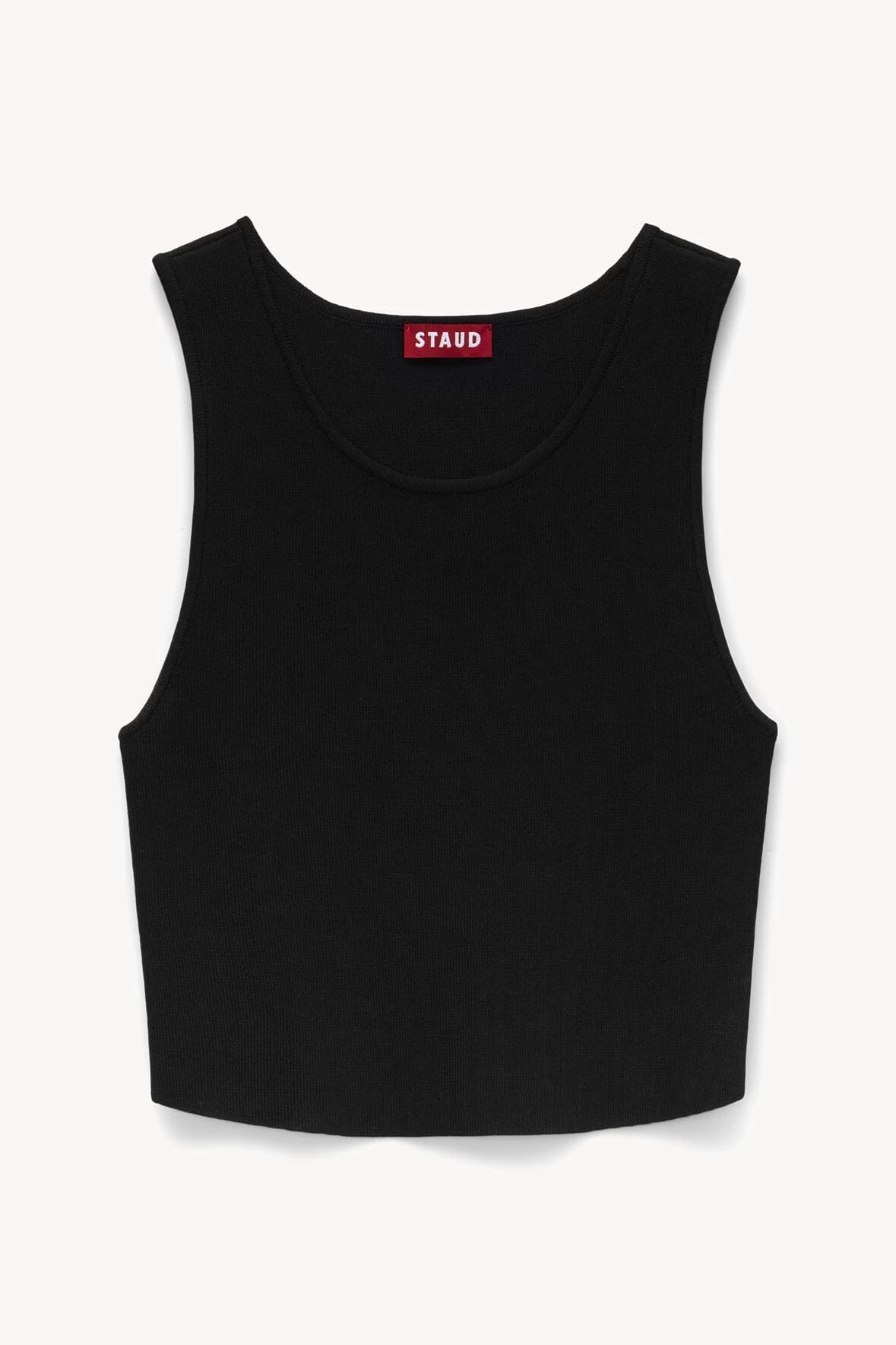 The Noor Top is a cropped tank made out of a compact knit fabric. This style can be worn on its own or layered underneath a shirt jacket for cooler temperatures.