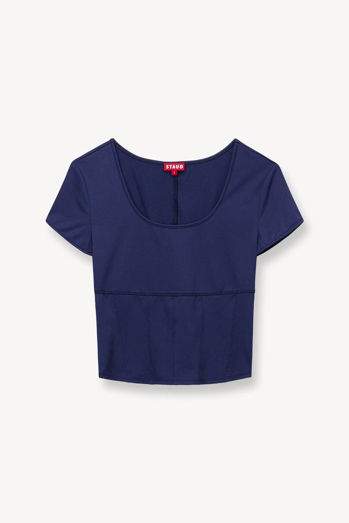 A scoop neck fitted tee with corset seaming, the Replay Top features moisture-wicking fabric technology to help you stay dry and comfortable on and off the court.