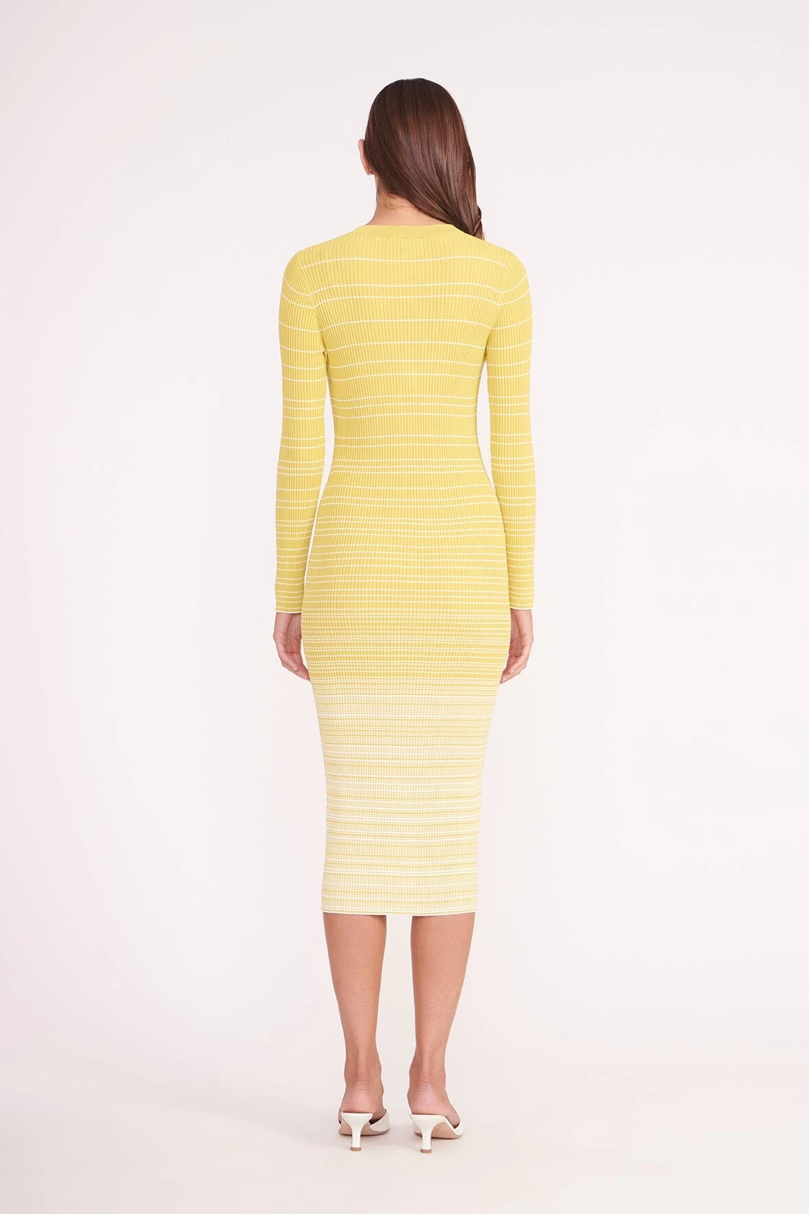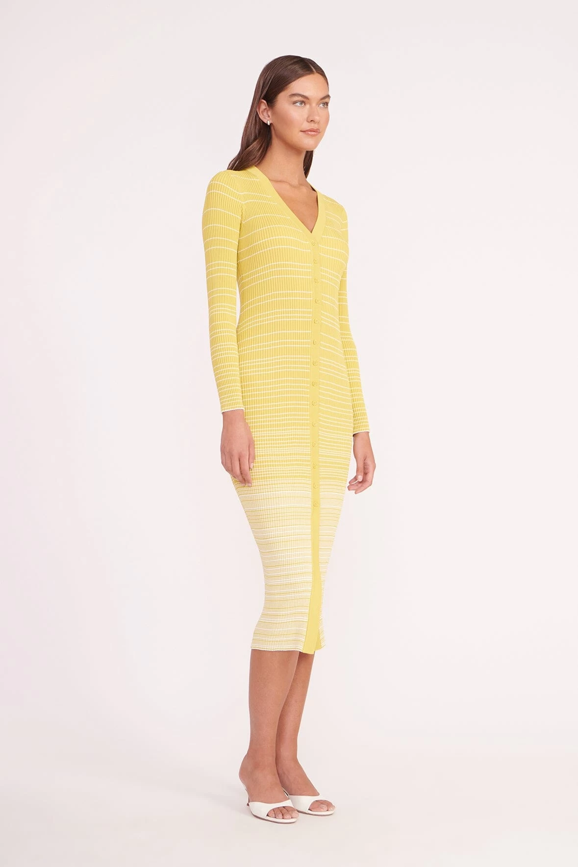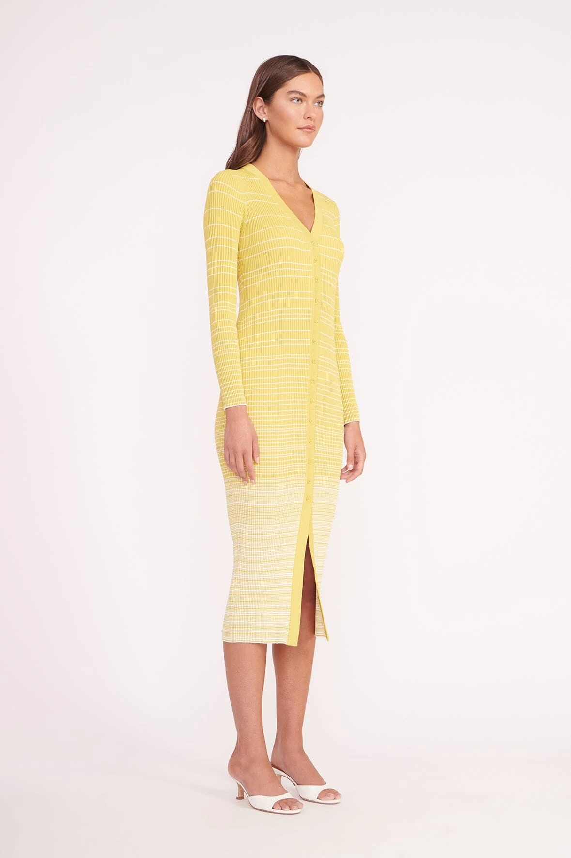 Our signature style in a new ombre stripe update. The Shoko Sweater can be worn as a cardigan or dress. This style is made out of a stretchy, comfortable compact rib knit fabric