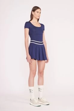 Cotton pique v-neck polo with contrast collar and sleeve bindings. The Volley Top offers a relaxed silhouette and completes a set when paired with the matching Doubles Skirt.